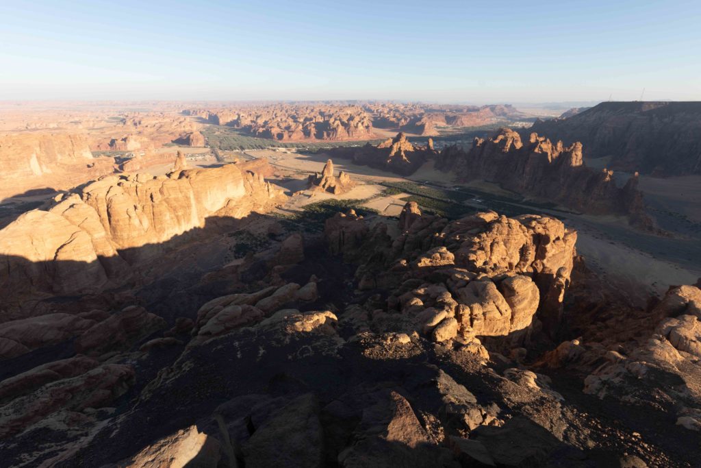 Après nos balades dans les dunes et les rochers au coeur du désert, nous arrivons dans l’oasis luxuriante d’AlUla. L’oasis est magnifique, avec des paysages époustouflants de falaises de grès roses érodés par le vent et un océan de palmiers. Exceptionnel!