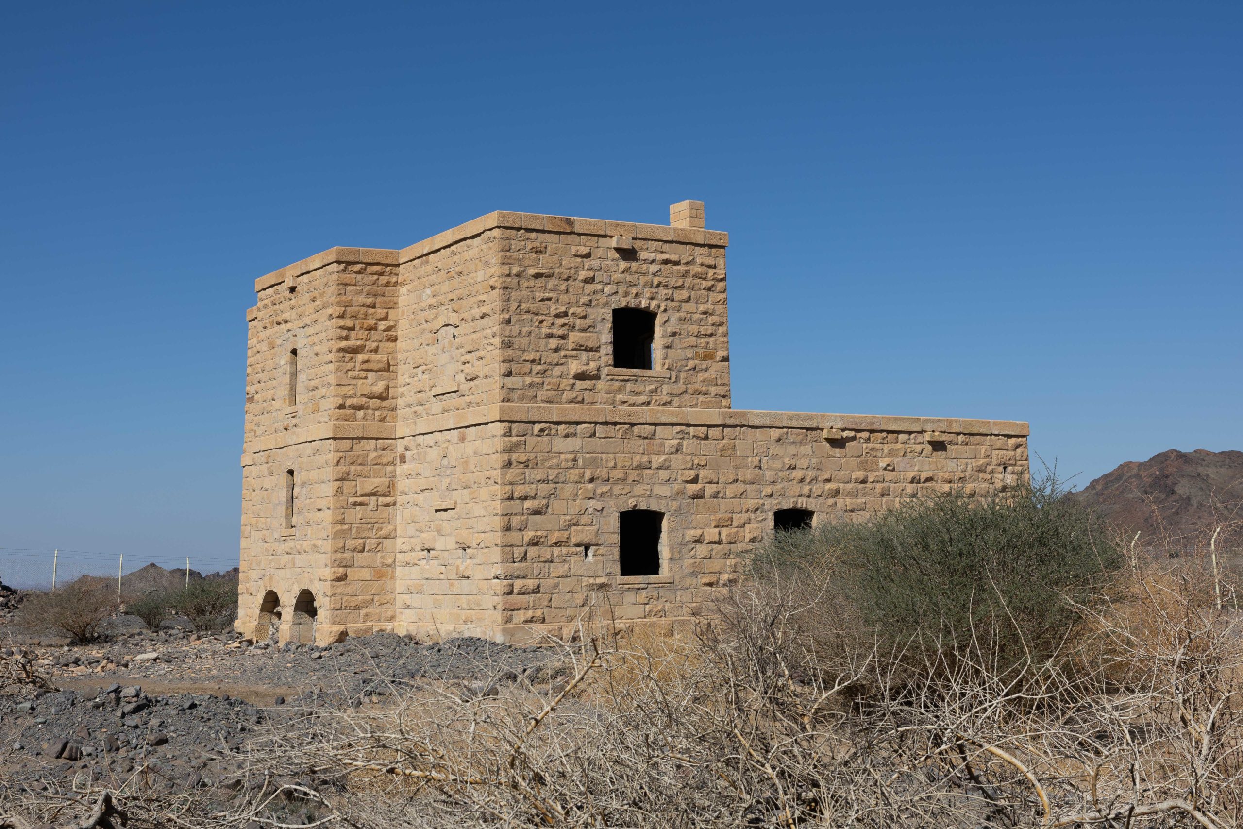 Les gares sont toutes construites sur le même modèle, l’architecte ne s’est pas cassé la tête : un bâtiment sur 2 niveaux avec un hall central recouvrant une réserve d’eau, les toilettes au fond et des salles de part et d’autres. Parfois on trouve aussi d’autres bâtiments pour de stockage de l’eau, le logement de fonction du chef de gare et le buffet (bon ok on extrapole un petit peu…). Les matériaux de construction changent en fonction de la géologie: à proximité d’AlUla les pierres sont du grès rose, plus au sud on passe à des basaltes noirs, voire un mélange des deux pour la déco dans les gares les plus importantes. Les bâtiments sont bien préservés et ont parfois été retapés dans les années 1960 lorsqu’un projet (non abouti) de remise en service de la voie avait vu le jour.